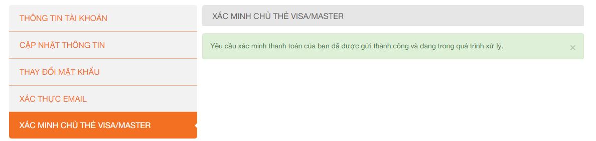 Như vậy là bạn đã hoàn thành nạp bằng VISA.